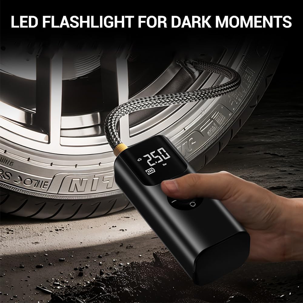 With dual power options (Battery + Car Adapter), a 6000mAh rechargeable battery, and smart auto shutoff, AirBlaze⢠makes inflating car tires, bike wheels, and sports gear effortless and precise.